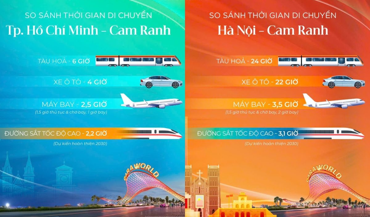 - Thông qua ga xe lửa Nha Trang đoạn đi qua TP Cam Ranh có thể dễ dàng kết nối, giao thương các vùng với Cara World Cam Ranh. Đặc biệt đã có chuyến tàu 5 sao Sài Gòn – Nha Trang cho du khách nhìn ngắm phong cảnh ven đường, có cơ hội được trải nghiệm tiếng động cơ tàu hỏa cùng với âm thanh kim loại va vào nhau vô cùng thích thú.