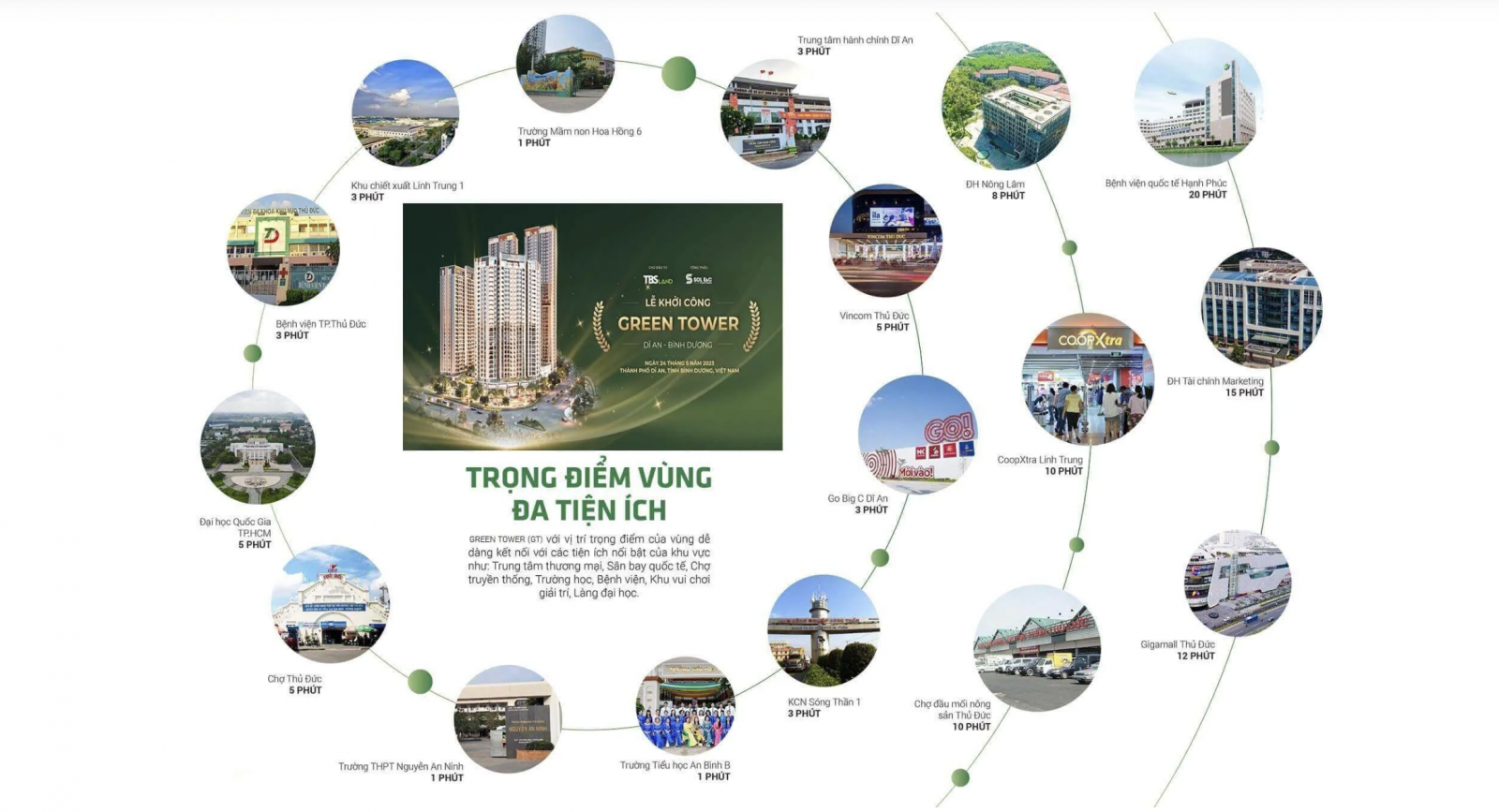 Xung quanh dự án là hệ thống tiện ích hiện hữu đáp ứng đầy đủ nhu cầu sống, làm việc và học tập cho cư dân như: