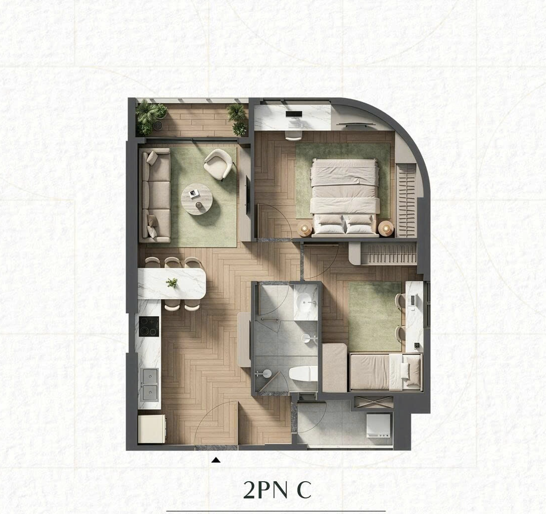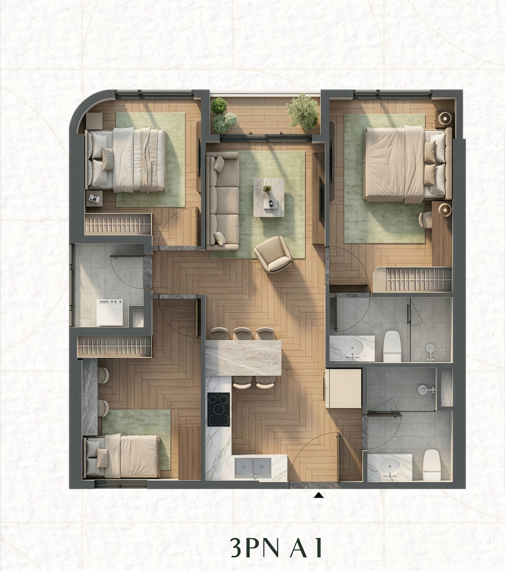 - Thiết bị bếp & Phụ kiện: Trang bị từ các nhãn hiệu như Häfele, máy nước nóng Ferroli.