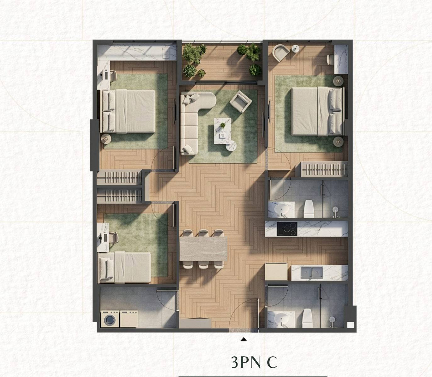 MÔI TRƯỜNG SỐNG XANH : Lấy cảm hứng từ phong cách “city resort”, “phòng khách” dự án với hệ thực vật đa tầng, mật độ xanh lớn tạo cảm giác như một ốc đảo xanh giữa lòng thành phố, mang đến cho cư dân môi trường sống xanh, lành manh với hệ tiện ích vượt trội.